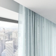Fabric supplier - BelgiumCurtain manufacturer - UkraineColor - light blueVisual characteristics - the curtain fabric lets light through beautifully and looks like natural linenFabric composition - 100% Recycled PolyesterFabric density - 291 grams/mTransparency - semi-transparentProduct height - up to 290 cm, 114''Care - gentle dry cleaning with perchlorethylene, delicate washing at 30°C