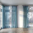 Fabric supplier - BelgiumCurtain manufacturer - UkraineColor - turquoise, blueFabric composition - 100% Recycled PolyesterFabric density - 347 grams/mTransparency - sheer, thick thread, but loose fabricProduct height - up to 294 cm, 116''Care - gentle dry cleaning with perchlorethylene, delicate washing at 30°C