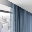 Fabric supplier - BelgiumCurtain manufacturer - UkraineColor - blueFabric composition - 100% Recycled PolyesterFabric density - 347 grams/mTransparency - sheer, thick thread, but loose fabricProduct height - up to 294 cm, 116''Care - gentle dry cleaning with perchlorethylene, delicate washing at 30°C